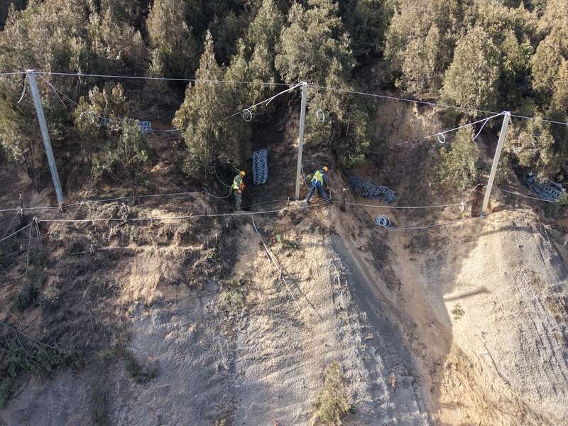 峭壁之上,张程泽眯着眼睛,紧盯着这个嗡嗡直响的大家伙。网片精准落位,他赶紧招呼工友一起将其抬到备用区,铺开拆分,等待挂网。