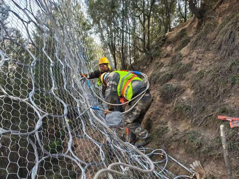 山风越刮越紧,天也渐渐暗了下来。党伟杰麻利地换上头灯,和两名青工一起把织好的网片挂上立柱,刘冰心上前扣好拉绳索环,将被动网用力绷实。“宇轩,你们把织好的网抬过来!”张程泽拽了拽接口处,确认牢靠后,赶忙催促着作业进程。